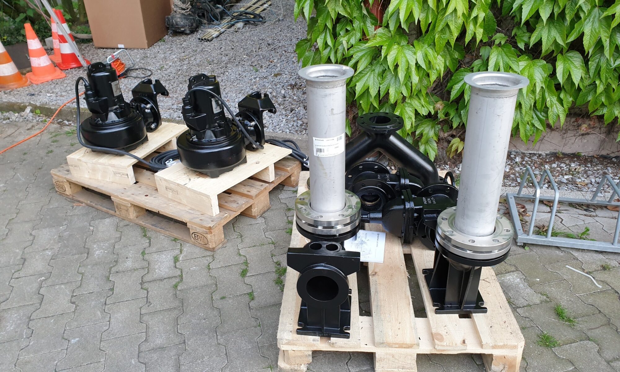 Dieses Ding auf den Paletten ist eine „Hebeanlage“. Kurz erklärt, sie sorgt dafür, dass die Tierheim-Abwässer im richtigen Kanal landen. Wir sind sehr froh, dass zwei nette Mitarbeiter der Firma Gerd Kessel, dieses Ungetüm Anfang Juni bei uns im Tierheim in tagelanger Kleinarbeit in einem kleinen Loch versenkt haben.