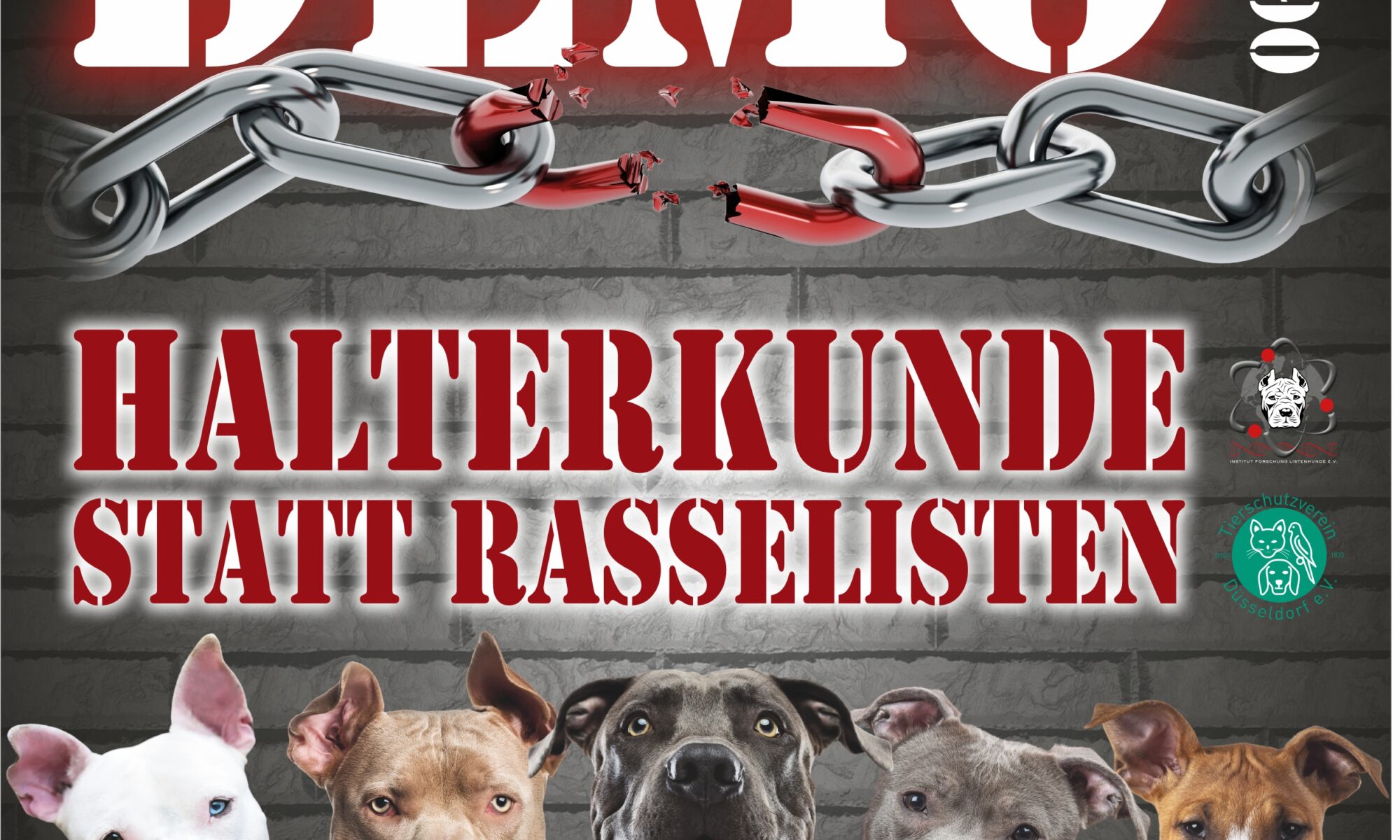 Am 06.04.2024 treffen wir uns um 11.30 Uhr wieder zu einer Demo „Halterkunde statt Rasseliste“ auf dem Schadowplatz. Von dort geht es die Kö entlang zum Burgplatz, wo eine Zwischenkundgebung geplant ist. Nach etwa anderthalb Stunden sind wir zurück am Schadowplatz. Die letzte Demo im Vorjahr war mit rd. 150 Teilnehmern schon sehr erfolgreich – vielleicht können wir das jetzt ja noch toppen. Willkommen sind alle, ob mit oder ohne Hund, die sich gegen Vorurteile, Rassismus und Diskriminierung aussprechen.
