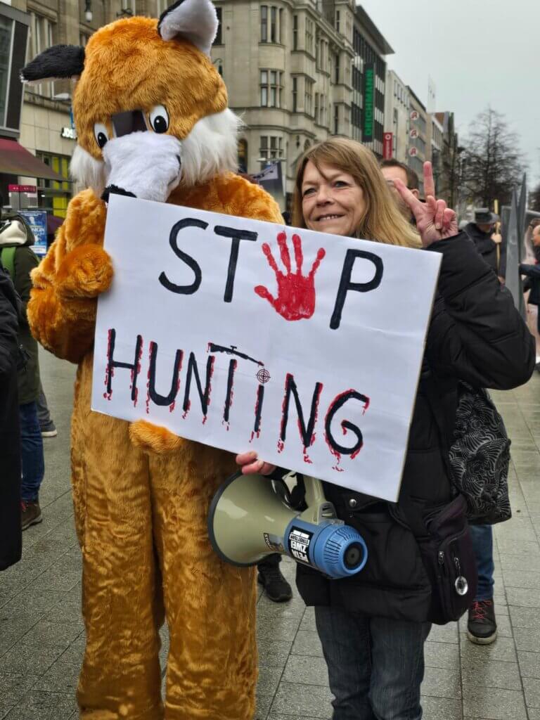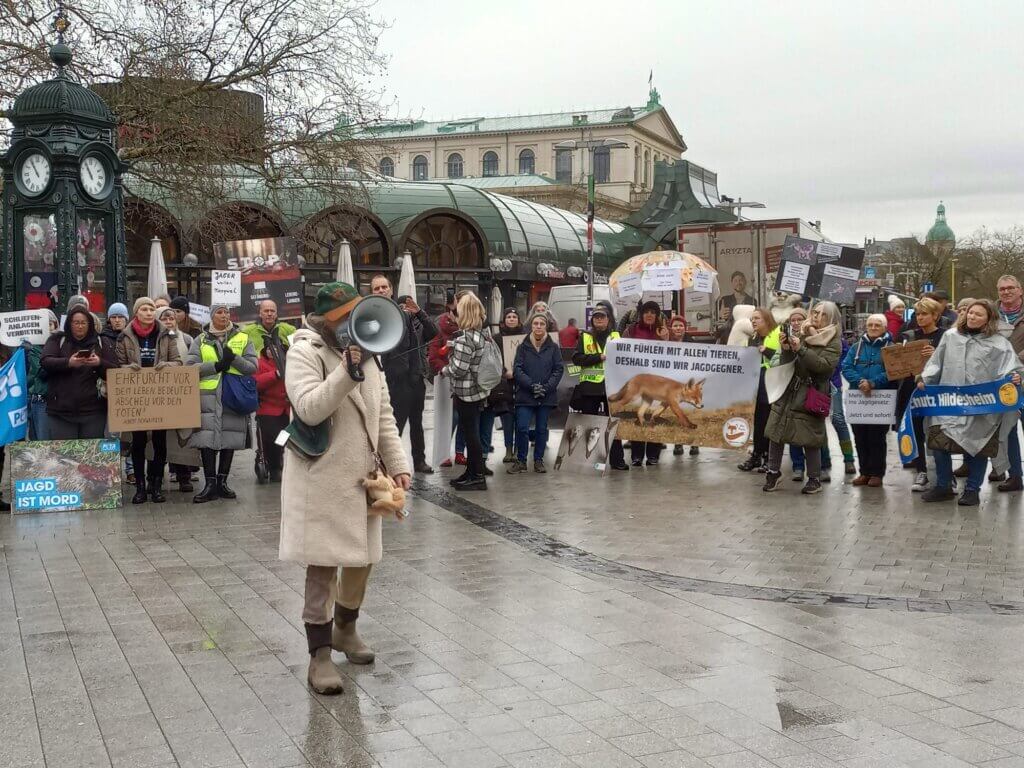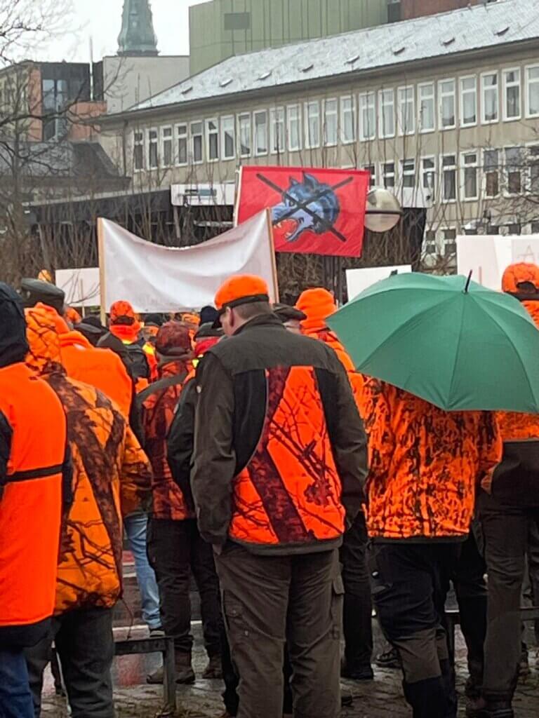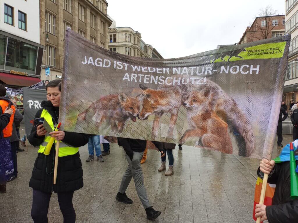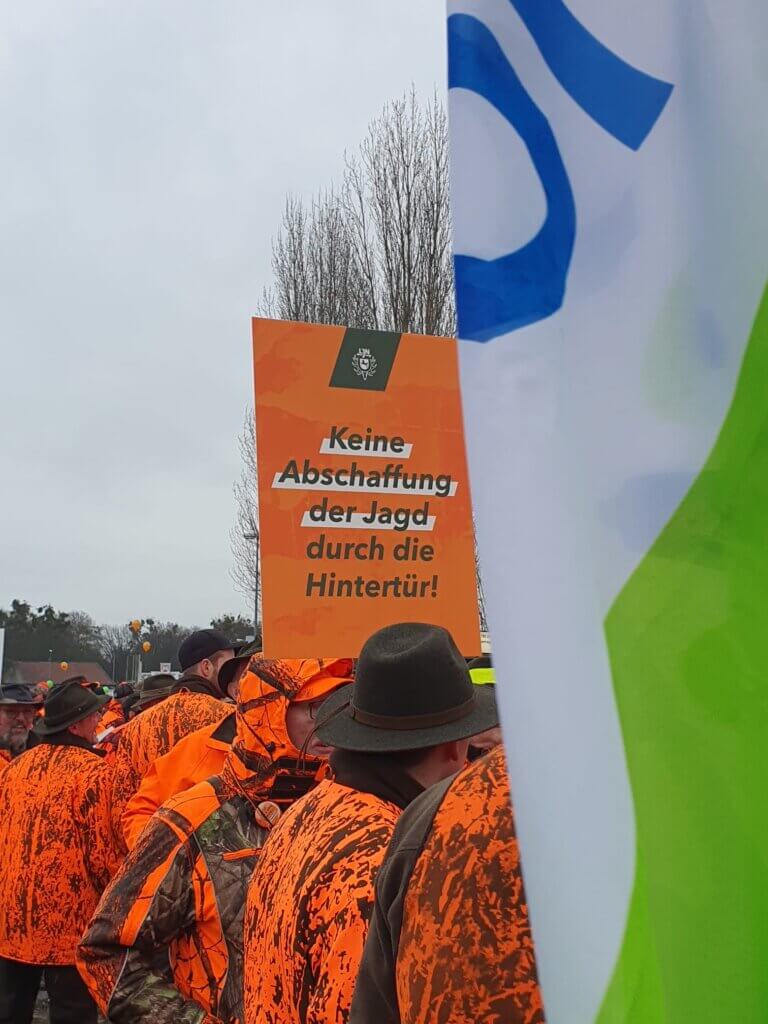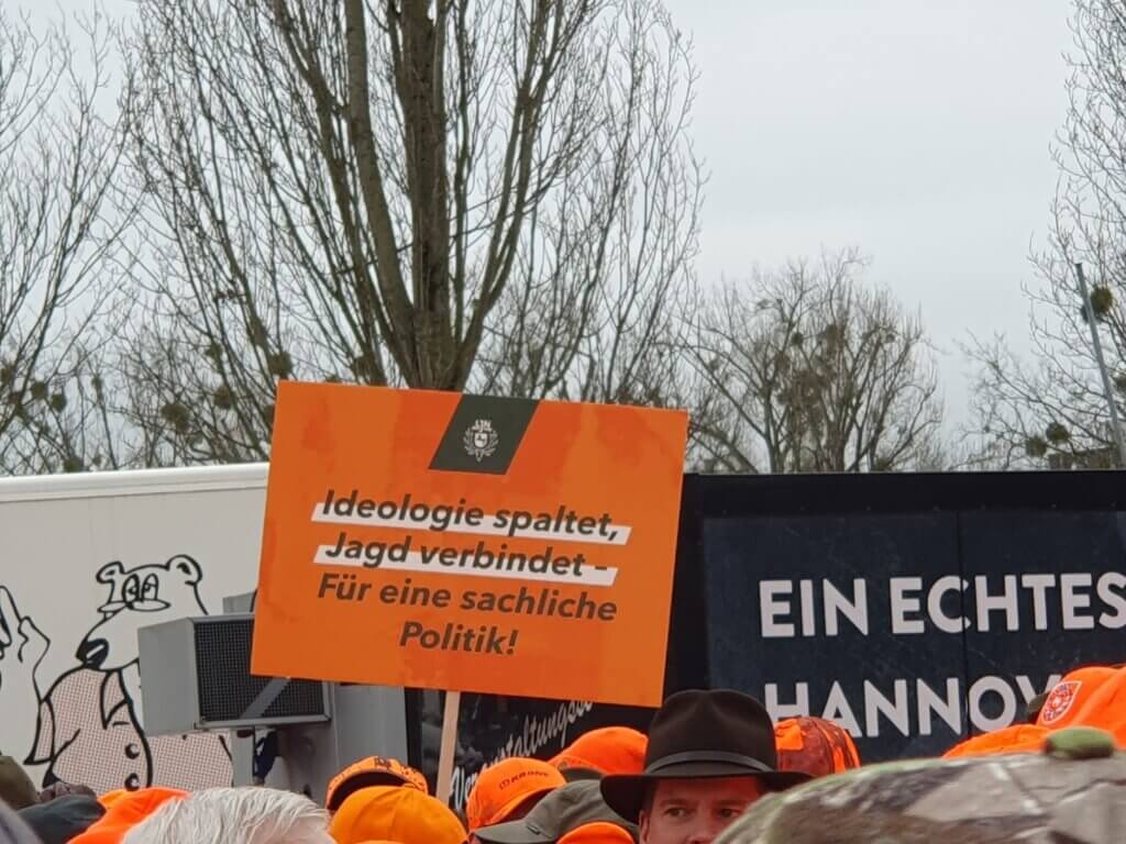 Von der Presse geschätzte ca. 20.000 Jäger und Jägerinnen GEGEN die von Ministerin Staudte vorgeschlagene Jagdgesetznovellierung zugunsten des Tierschutzes. Auf der anderen Seite ca. 400 Tierrechtler und Tierrechtlerinnen, die FÜR die Novellierung und Tierschutz nach Hannover gereist sind und so laut waren, dass man den Präsidenten des deutschen Jagdverbands, Helmut Dammann-Tamke, der sich übrigens sehr über die Anwesenheit von Clemens Tönnies freute, selbst ja bekannt als großer Trophäensammler, bei der Abschlussrede kaum verstehen konnte.