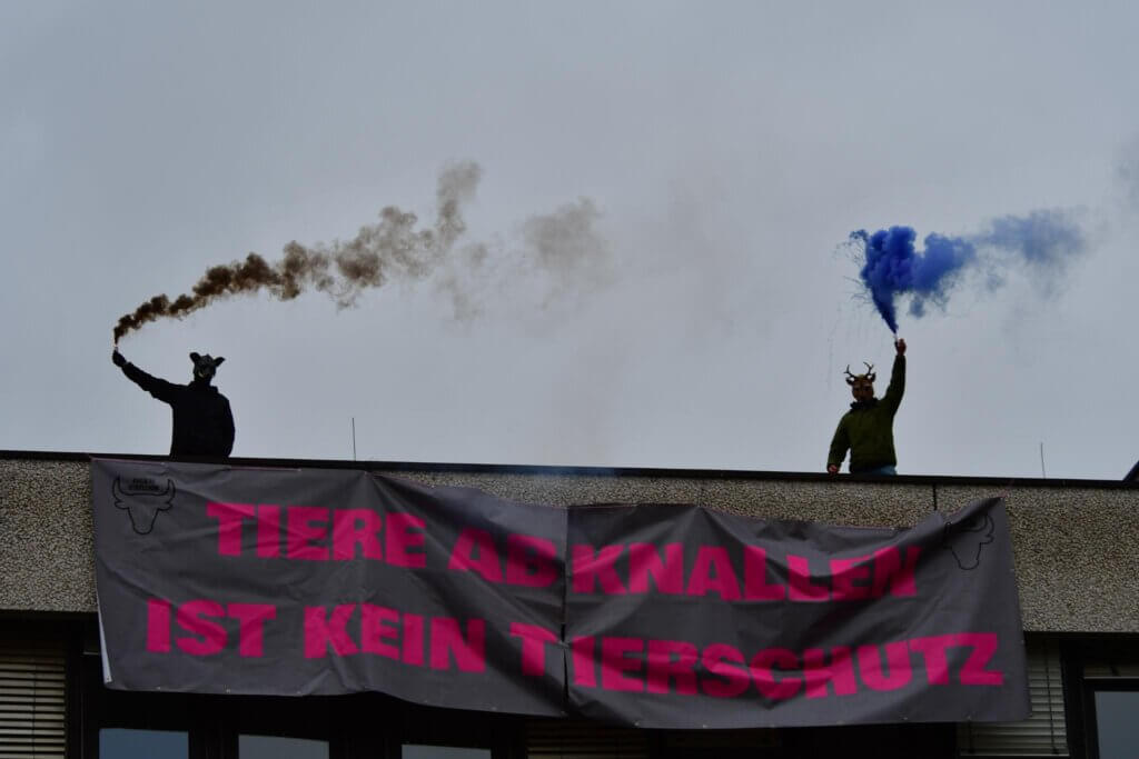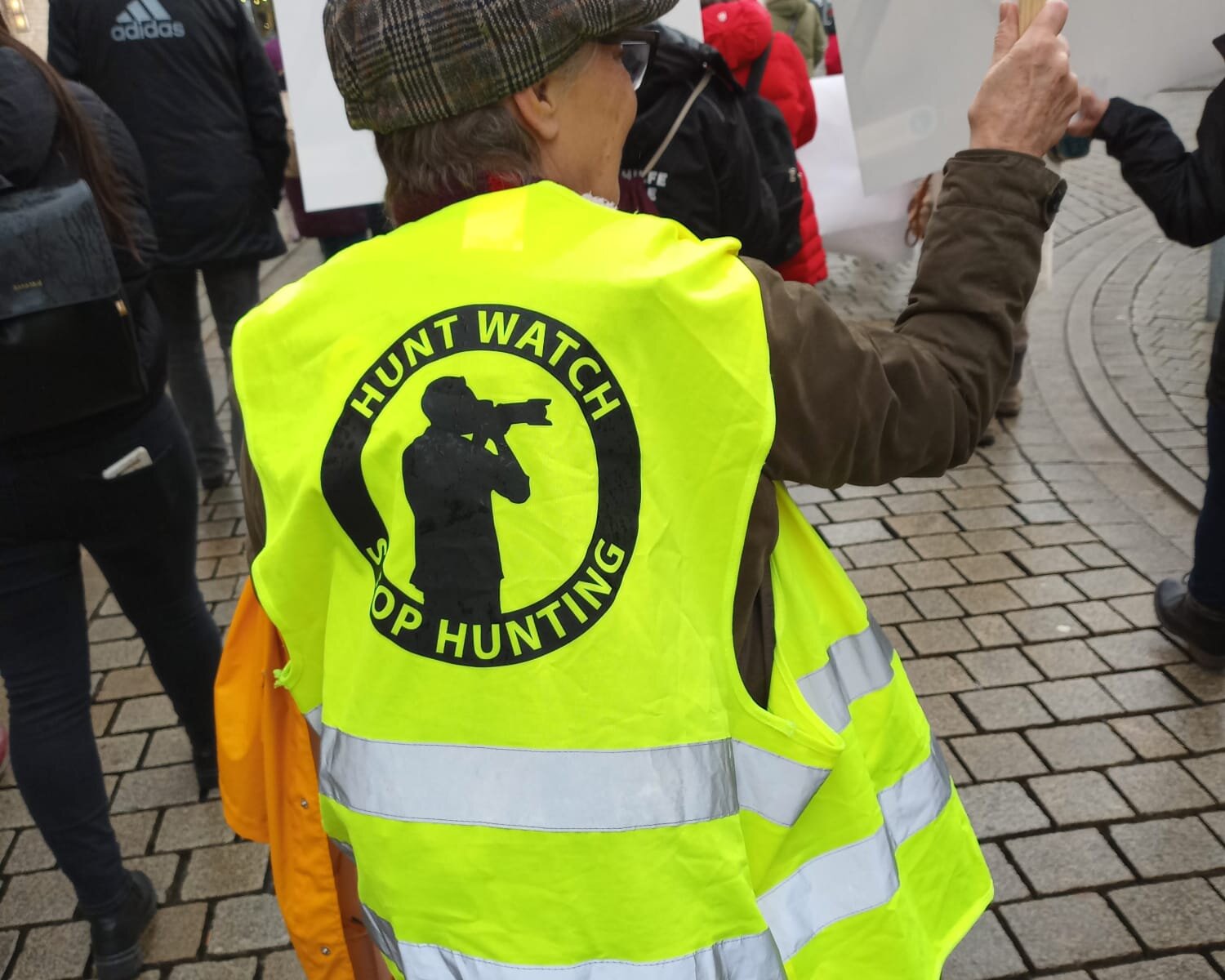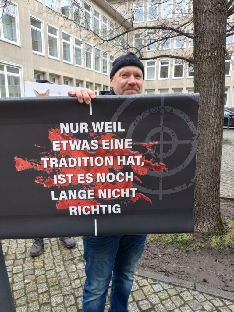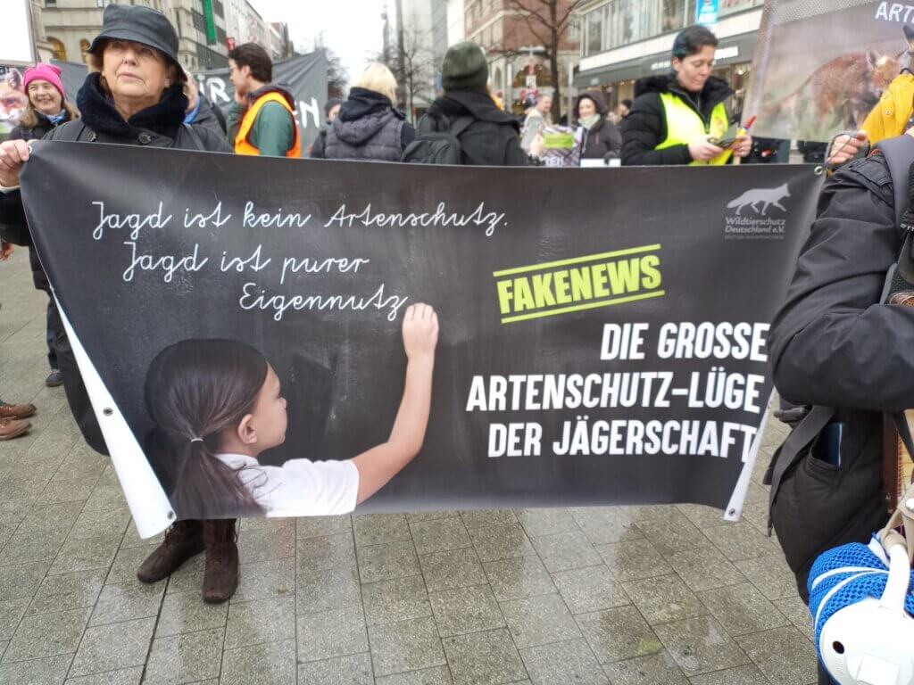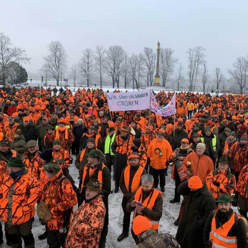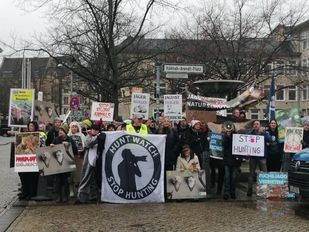 Von der Presse geschätzte ca. 20.000 Jäger und Jägerinnen GEGEN die von Ministerin Staudte vorgeschlagene Jagdgesetznovellierung zugunsten des Tierschutzes. Auf der anderen Seite ca. 400 Tierrechtler und Tierrechtlerinnen, die FÜR die Novellierung und Tierschutz nach Hannover gereist sind und so laut waren, dass man den Präsidenten des deutschen Jagdverbands, Helmut Dammann-Tamke, der sich übrigens sehr über die Anwesenheit von Clemens Tönnies freute, selbst ja bekannt als großer Trophäensammler, bei der Abschlussrede kaum verstehen konnte.