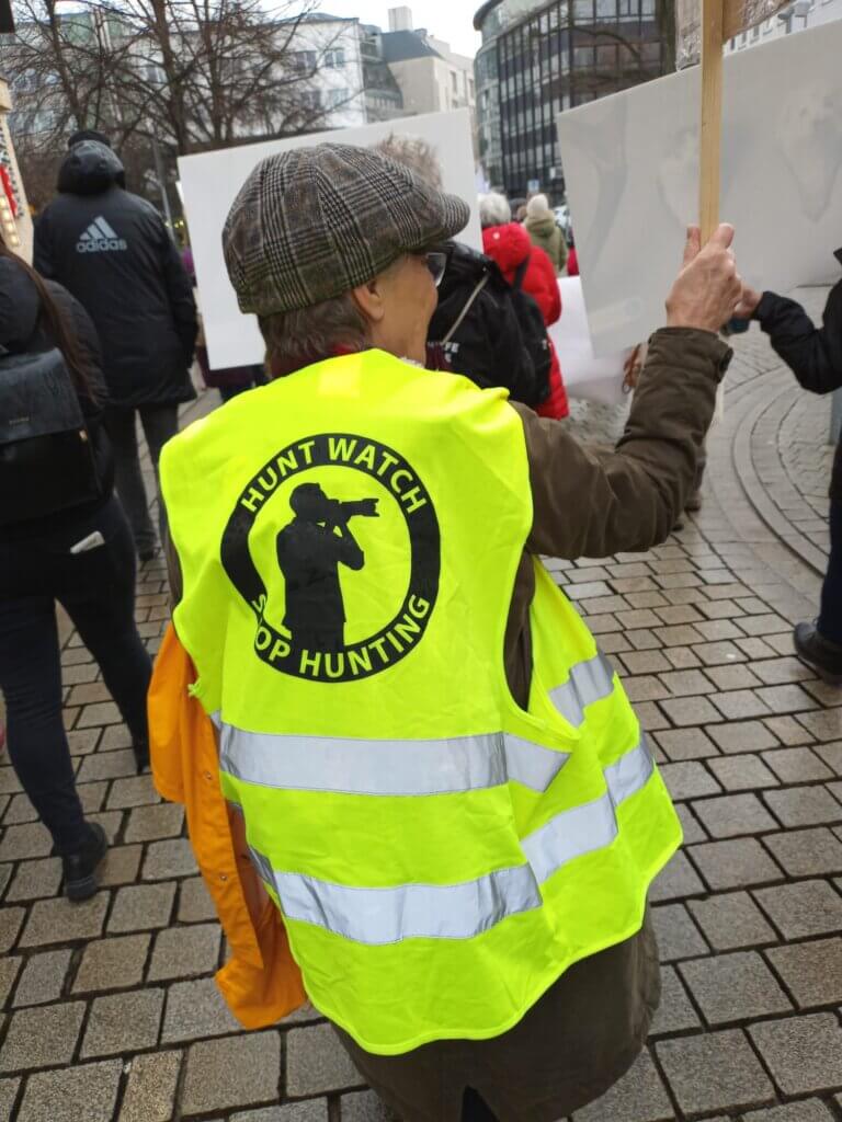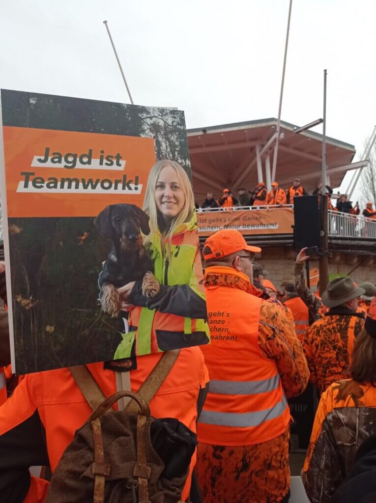 Es ging fast über die Grenzen des Erträglichen hinaus, welche Gesprächsthemen, welche Einstellungen, welche Aggression und welche Gewaltbereitschaft von den, bleiben wir sachlich, orange gekleideten Menschen rüberkam. Wir haben uns mit unserem Filmteam beides angeschaut um uns ein eigenes Bild machen zu können. Ebenso haben uns einige Jäger und Jägerinnen – übrigens war ein Großteil davon mit gesponserten Bussen aus ganz Deutschland angereist – spannende Aussagen in die Kamera gemacht und damit leider bestätigt, was wir bereits vermutet und befürchtet haben- die machen ihre eigenen Gesetze und im Zweifel greifen sie halt zur „Drei S-Regel: Schießen, schaufeln, schweigen“.