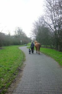 Kurz vor den Schneefällen nutzten wir das Wetter und machten mit den drei Ponys und Ticitomba die Gegend unsicher. Hinter dem Hof geht es nämlich direkt auf einen Waldweg, der zu Feldern führt und spazieren gehen tut unseren 3-Käsehochs und dem Pferdeopa wirklich gut. Dabei ging es teilweise über Stöcke und Äste, was eine super Bewegungsübung für die nicht mehr ganz so jungen Dinger war. Und auch für die Tiere…