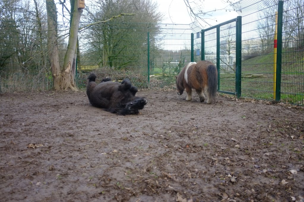 Die neuen Eindrücke hinterließen pure Zufriedenheit bei den Pferden, die sobald sie ihr Territorium betraten, ein ordentliches Wälz-Bad nahmen. Zwar war das frisch geputzte Pony-Fell hinüber, dafür aber ging es der Pony-Seele scheinbar super :).