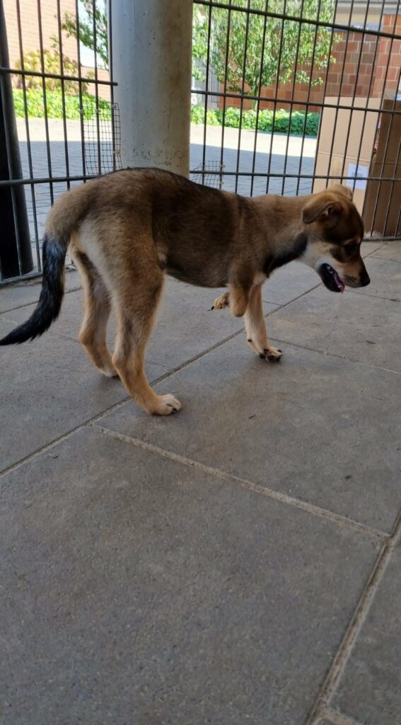 Wir waren bei einem Spezialisten mit ihr. Er hat uns zunächst eine Orthese empfohlen, um Stabilität in das ganze Bein zu bekommen. Diese Orthese muss speziell auf den Hund angepasst werden. Da Hope noch im Wachstum ist, wird es wohl nicht bei einer bleiben. Daraus könnte sich ein größerer Kostenfaktor entwickeln, denn diese speziell angefertigten Orthesen sind nicht billig. Inzwischen durfte Hope auf eine Pflegestelle umziehen, denn das Leben im Zwinger ist natürlich Gift für ihre Gelenke.