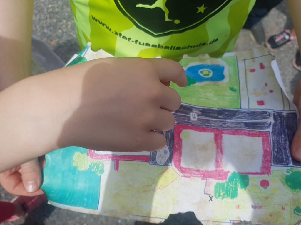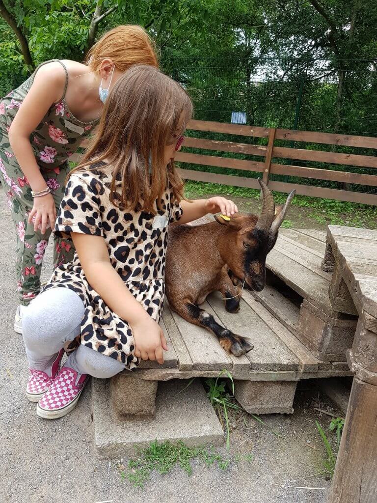Obwohl wir noch nicht eröffnet haben, konnten wir jetzt in den Sommerferien für ein paar Schüler*innen einen Hofbesuch möglich machen. Im Rahmen unseres kleinen, abgespeckten Sommerferienprogramms durften die Kinder der Don Bosco Grundschule und der Maria Montessori Grundschule in mehreren Stationen die Tiere kennenlernen, ausmisten, hegen und pflegen und den Teich mit seinen Froschkindern untersuchen. Zum Abschluss erhielt jede Gruppe eine Schatzkarte, die zu einem Schatz mit Goldtalern und veggie-Süßigkeiten führte. Als Geschenk durften sie einen TiNa-Beutel mit Heften, Stickern, Button usw. mit nach Hause nehmen.