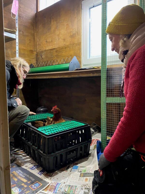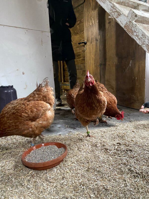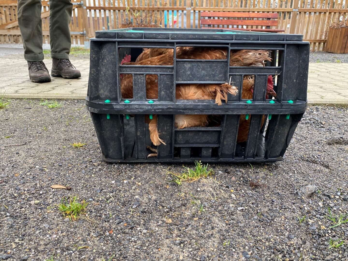Da wir in den vergangenen Wochen zwei Hennen in den Hühnerhimmel verabschiedet haben, entschieden wir, wieder Platz für 4 weitere Hennen anzubieten. Das ließ sich Babette Terveer mit ihrem Verein Notpfote Animal Rescue e.V. und dem Federierheim Neuss nicht zweimal sagen. Gestern war es soweit und pünktlich zum Nikolaus kamen 4 hübsche ehemalige Legehennen zu uns. Wir trennen die Vier noch von unseren neugierigen Damen und Torben, denn Vergesellschaftung bei Hühnern hat so seine Tücken. Wir freuen uns jedenfalls total, dass die Neuen schon so aufgeschlossen und neugierig sind. Erstmal werden sie sich einige Zeit an die Anderen, den Stall und die Voliere gewöhnen, bis sie den ganzen Hof kennenlernen dürfen. Das wird spannend!