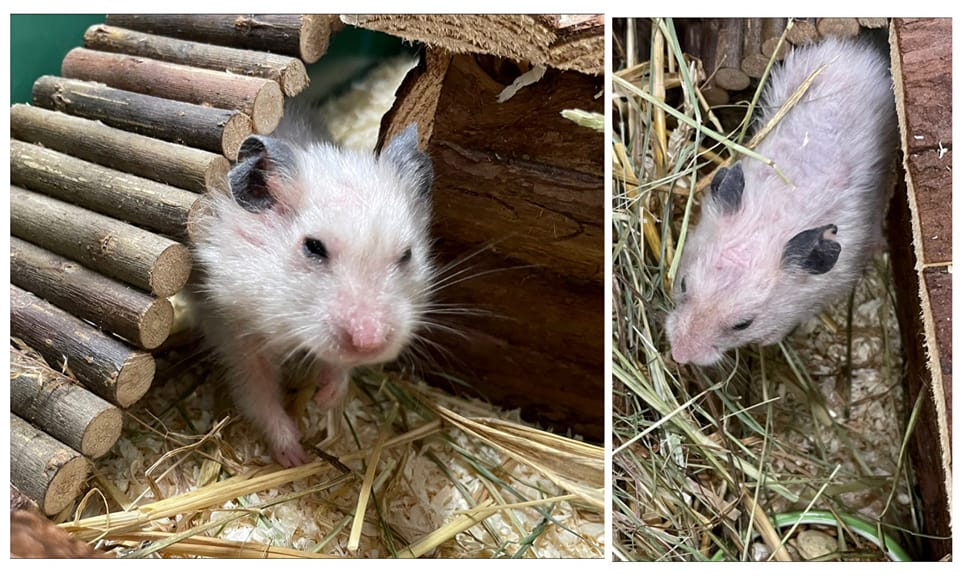 Leider ist der Hamster in keinem guten Allgemeinzustand und vermutlich auch schon älter. Von uns bekommt er nun die Pflege und Fürsorge, die ihm bisher verwehrt wurde.