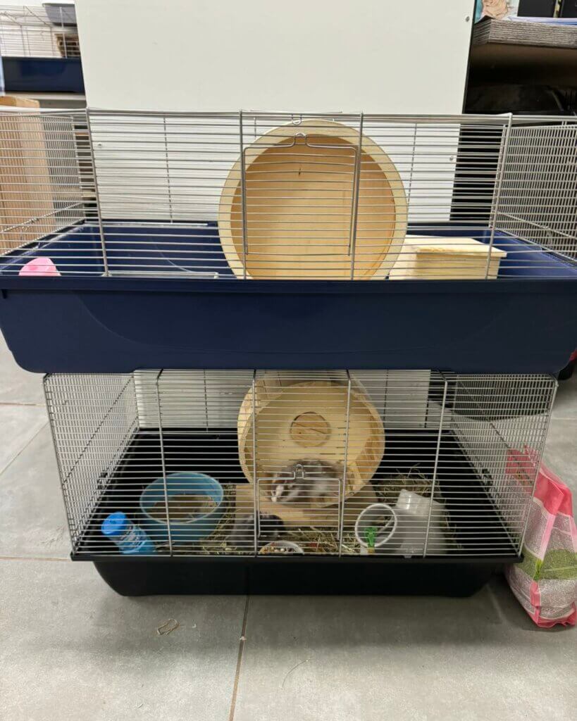 Diese zwei Käfige mit acht Hamstern wurden bei Kaufland gefunden.