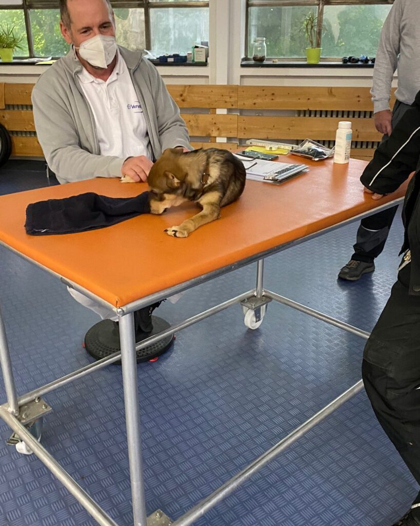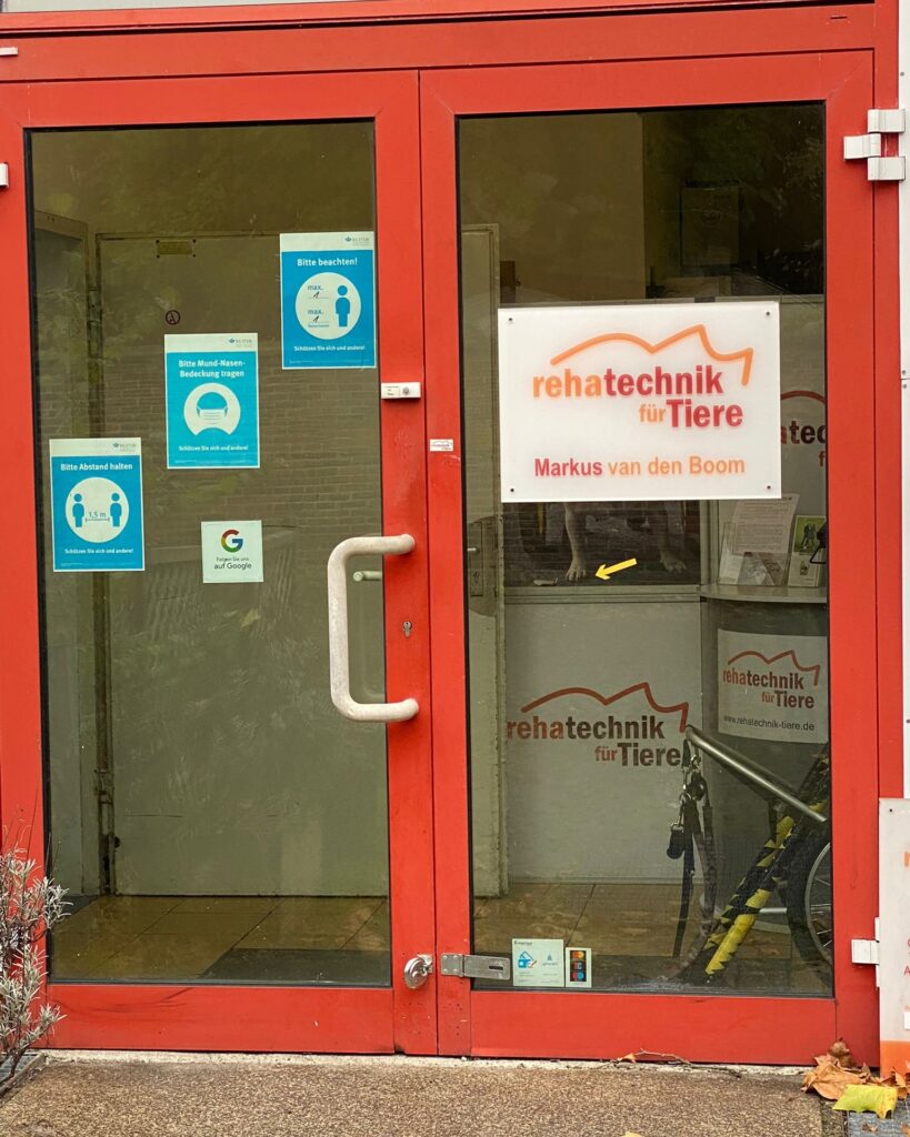 vor ein paar Tagen hatte Hope einen Termin bei einem Spezialisten für Tier-Rehatechnik in Bochum. Herr van den Boom hat sich Hope auch noch mal genau angeschaut und seine fachliche Einschätzung gegeben.