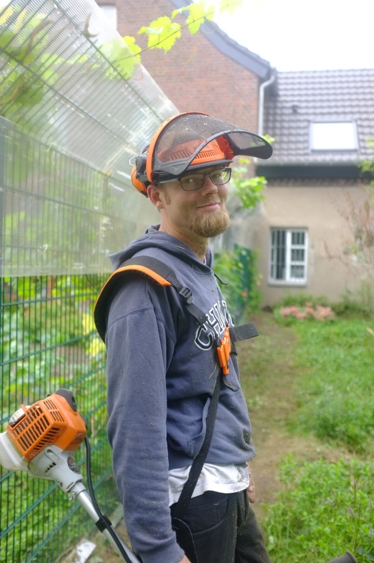Seit einiger Zeit ist Dominic im Tierheim angestellt, um Gartentätigkeiten auszuführen und auch uns auf dem TiNa-Hof unter die zarten Arme zu greifen. Er hat einen grünen Daumen und richtet auf dem Hof das ein oder andere, schnibbelt an Bäumen herum und hat jetzt den Katzengarten vor der Brust. Unser Wunsch: Wege anlegen, zwei Sandkästen (damit die werten Katzengesellen ihre Hinterlassenschaften komprimieren), Brennnesseln entfernen und die Bereiche zwischen den Wegen dürfen wild bleiben. Man sieht jetzt schon die zukünftigen Wege und wir freuen uns über eine „gezähmte Wildnis“. Danke Dominic!