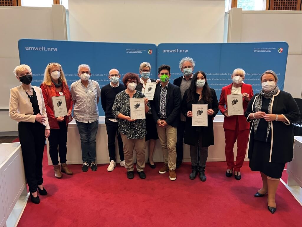 So durfte Frau Piasetzky am 04.10.2021 aus den Händen von Frau Ursula Heinen-Esser, Ministerin für Umwelt, Landwirtschaft, Natur- und Verbraucherschutz den mit 5.000,-€ dotierten Preis in Empfang nehmen.