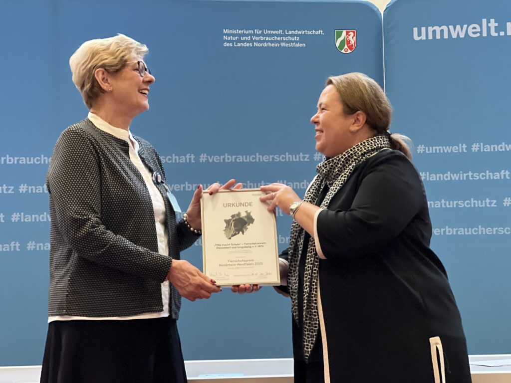 Bei der sorgfältigen Prüfung der Unterlagen aller Bewerber*innen hat die Jury entschieden, dass die Bewerbung des Bildungsprojektes „TiNa macht Schule“ zu den Besten dieses Jahres gehört. Ich freue mich daher Ihnen mitteilen zu können, dass Sie bei der Preisverleihung des Tierschutzpreises Nordrhein-Westfalen 2021 berücksichtigt werden.