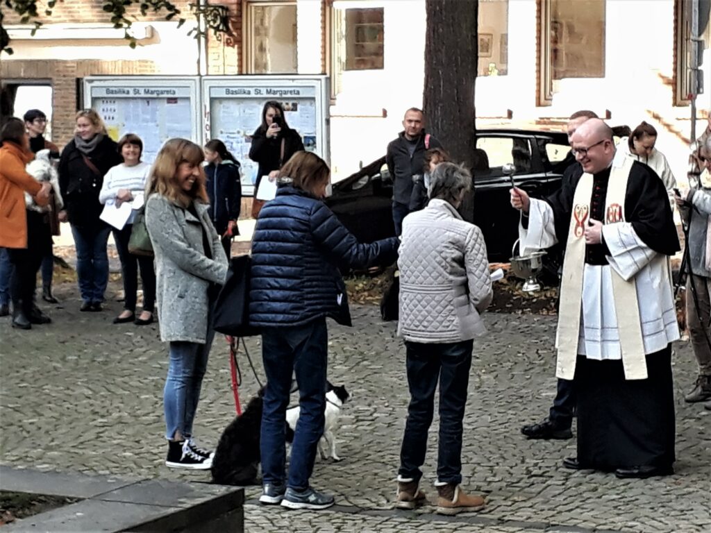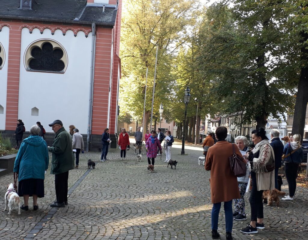 Auch in diesem Jahr organisierte Pastor Oliver Boss von St.Margaretha in Gerresheim wieder eine Tiersegnung. Bei strahlendem Wetter waren nicht nur unser Team Gassi mit mehreren Tierheimhunden sondern auch viele Düsseldorfer Hundebesitzer mit ihren Lieblingen gekommen. Man merkte Oliver Boss an, welche Freude er an der Tiersegnung hat, für die er dieses Mal besonders schöne Lieder, Fürbitten und Kyrie-Rufe ausgesucht hatte: „Guter Gott, hilf uns, die Tiere als unsere Mitgeschöpfe zu achten und ihnen unsere Pflege und Aufmerksamkeit zukommen zu lassen.“ „Schenke allen Haustierhaltern die Einsicht, dass sie eine hohe Verantwortung für ein kostbares Geschöpf Gottes tragen.“ und „Um selbst ein angenehmes Leben zu führen, beuten wir Menschen deine Schöpfung aus und nehmen Tieren und Pflanzen die Lebensgrundlage.“ Da spricht er uns Tierschützern aus dem Herzen!
