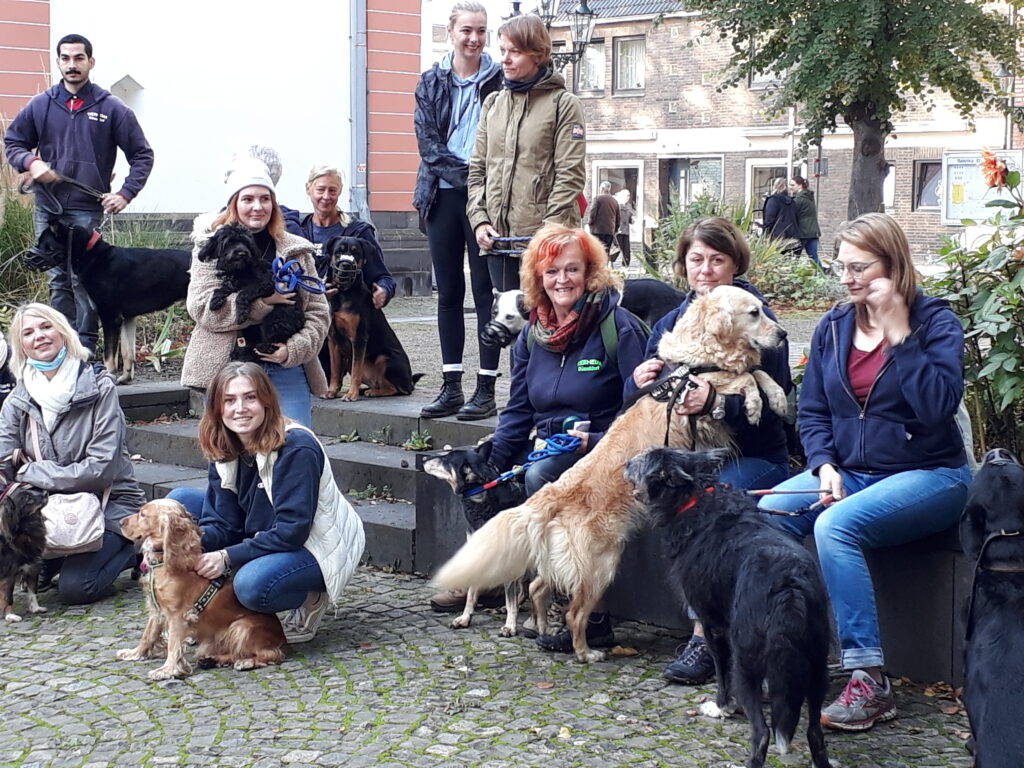 Unser großartiges Team Gassi hatte dieses Mal auch eine ganz breite Palette an Tierheimhunden dabei. Wie Hundetrainerin Annette Grisorio sagte, wollten sie zeigen, dass es auch in unserem Tierheim für jeden etwas gibt: in allen Altersklassen, vom kleinen Pudel über den Golden Retriever bis zum Kraftpaket Rottweiler. Alle – Dank der unermüdlichen Arbeit von Annette und ihrem Team – gut erzogen und mit vorbildlichem Benehmen.