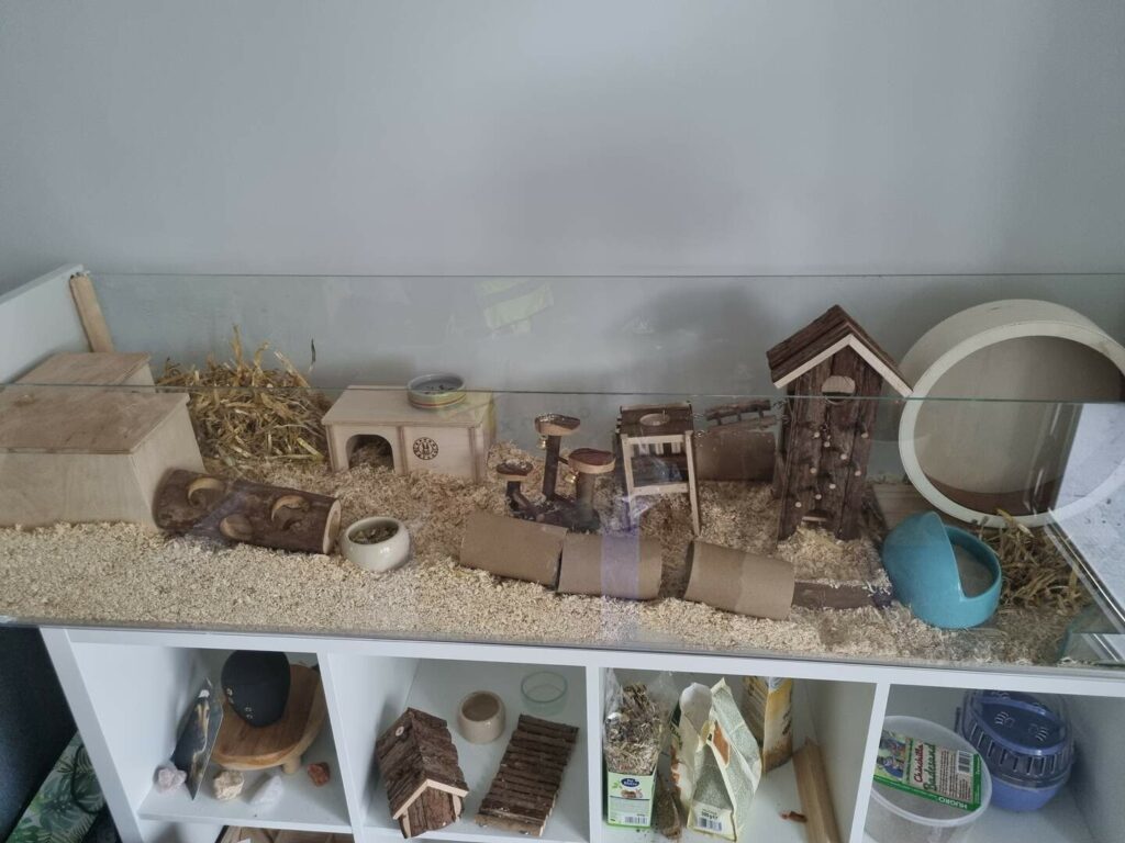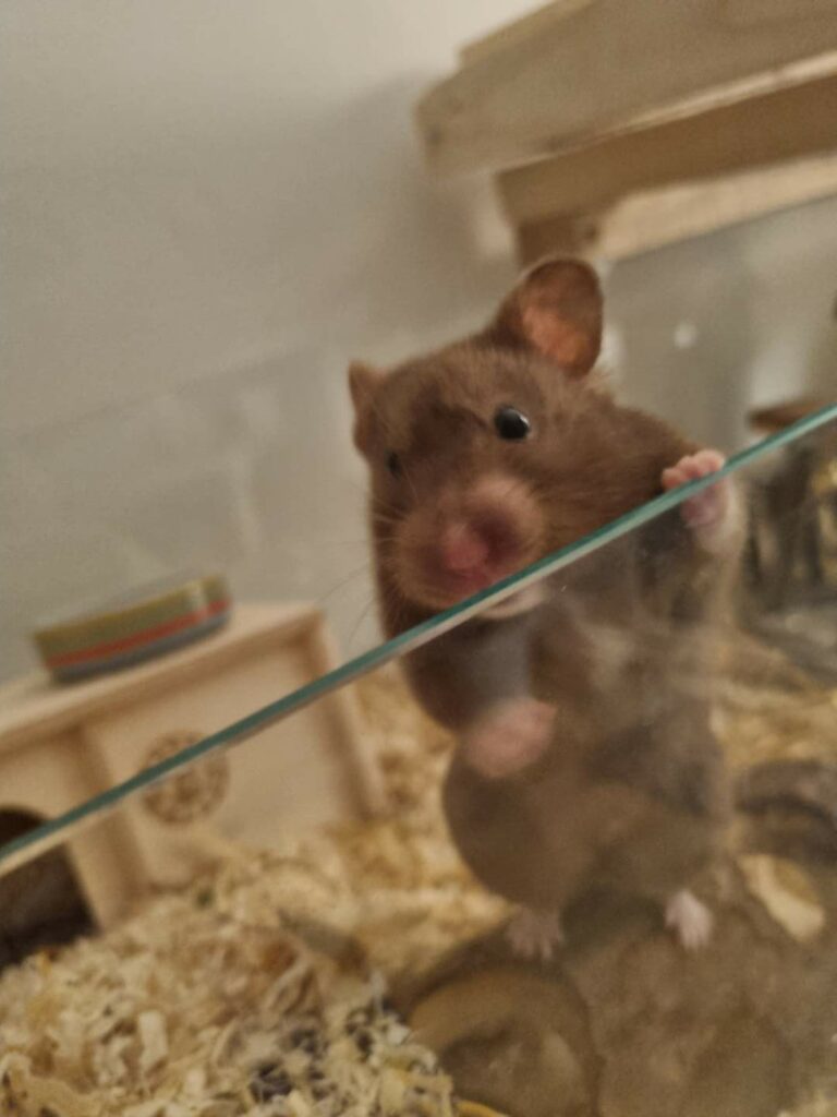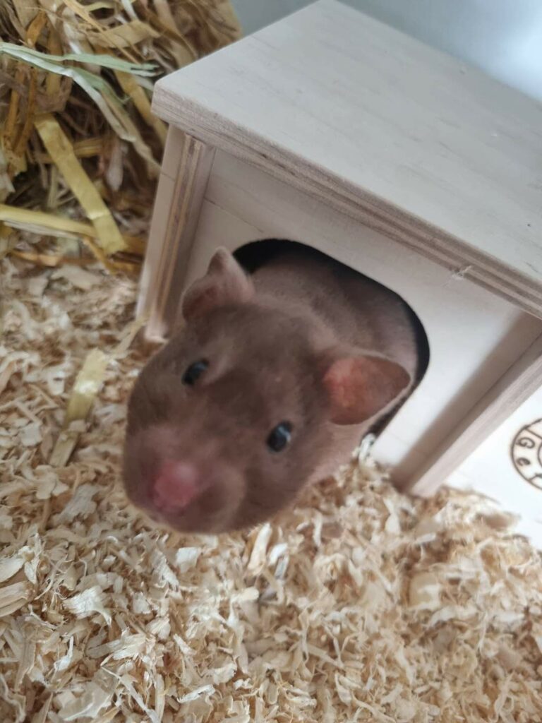 ich wollte Euch wissen lassen, dass es Hexe gut geht. Sie freut sich – neben ihrem regulären Futter – jeden Tag über frische Snacks wie Salat und Möhren und hat Freude daran meine Wohnung zu erkunden. Hin und wieder bekommt sie etwas Neues zum Spielen und sie scheint bei mir wohlzufühlen.
