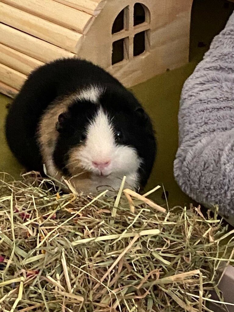 Er ist noch etwas schüchtern, dennoch ist er in den letzten Wochen um einiges zutraulicher geworden. Von mir lässt er sich mittlerweile am Kopf streicheln, vor allem hinter den Ohren. 🤗 Und wenn ich mich zu meinen Schweinchen setzte und mit ihnen rede (mache das mehrmals täglich; ist besser als Yoga), macht Vito kleine Hüpfies.