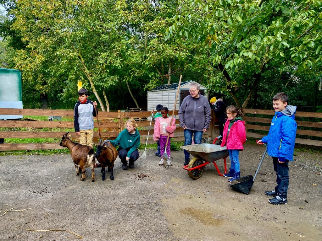 Das Herbstferienprogramm auf unserem Hof lud Kinder dazu ein, in mehreren Stationen unsere Tiere kennenzulernen. Kräftig mitangepackt wurde natürlich auch, Tiere bedeuten schließlich Arbeit. Nach dem Schubkarren schieben gab es noch eine Herbstschatzsuche und ein Quiz, damit die kleinen Forscher*innen ihr Erlerntes Wissen über die Tiere direkt abfragen konnten. Es hat super viel Spaß gemacht und ein kleines Geschenk am Ende rundete den Besuch ab und die Schüler*innen aus den Klassen 2-4 fuhren dreckig (und glücklich) zurück zur Schule.