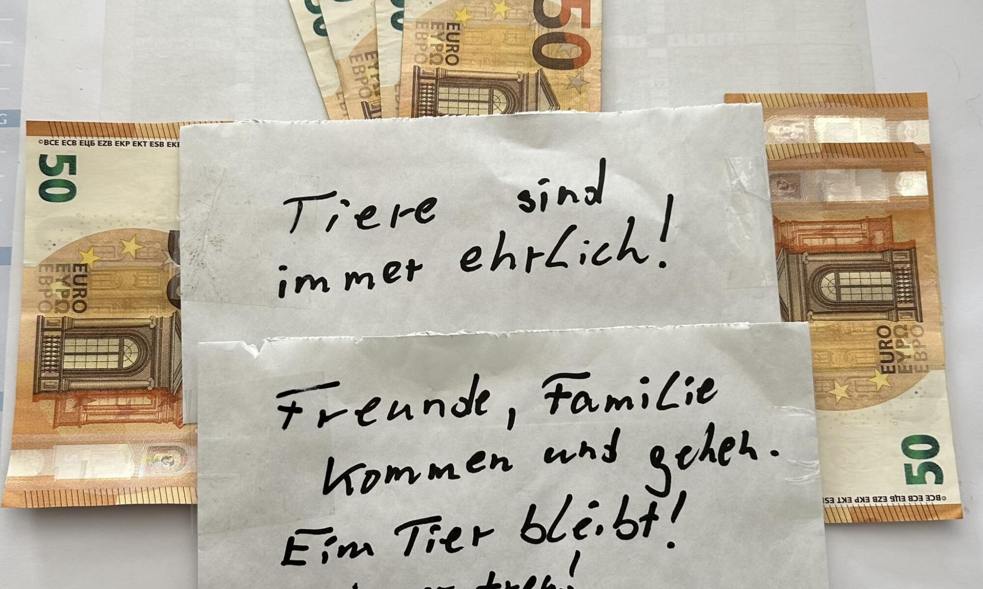 Normalerweise finden wir in unserem Briefkasten Rechnungen. Jeden Tag möchte der ein oder andere Geld von uns haben. Das kennen wir, das sind wir gewohnt. Am Samstag jedoch war alles anders. Ein anonymer Spender sendete uns dieses Geld in und mit den beiden schön geschriebenen Umschlägen.