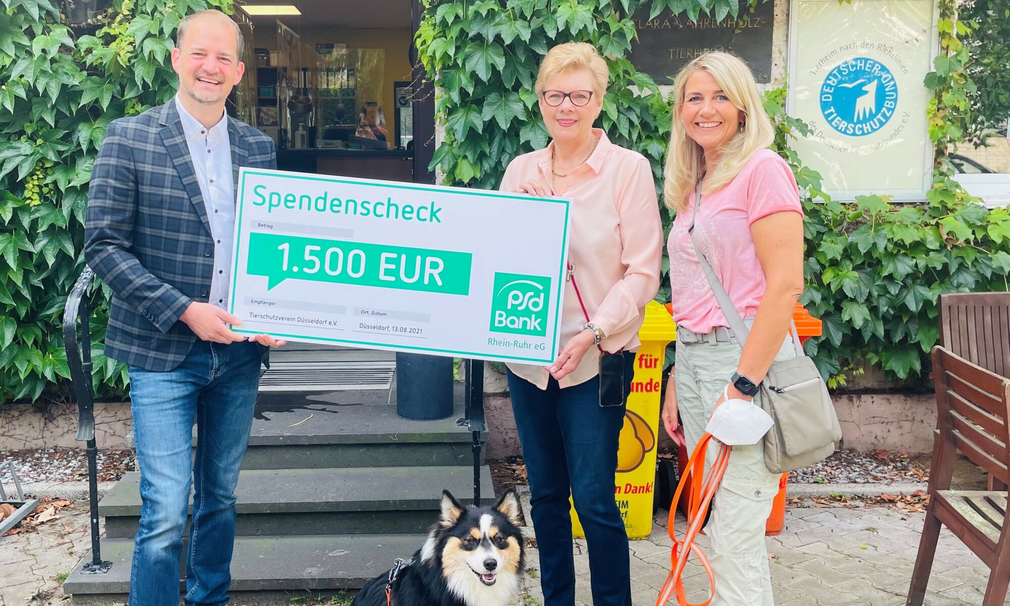 Was jetzt daraus resultierte freut uns riesig! Die PSD Bank Rhein-Ruhr eG hat sich spontan gemeldet und uns eine Spende in Höhe von 1.500€ zugesagt. Vergangenen Freitag war es dann soweit. Claudia Monreal, ihr Chef Christian Zeelen und natürlich Nala waren im Tierheim und haben Frau Piasetzky den Scheck übergeben.