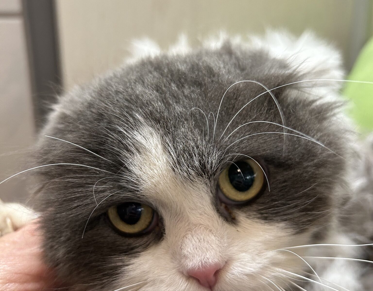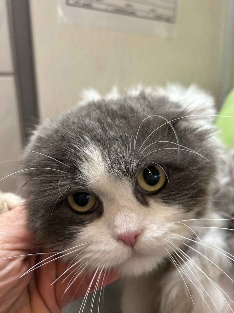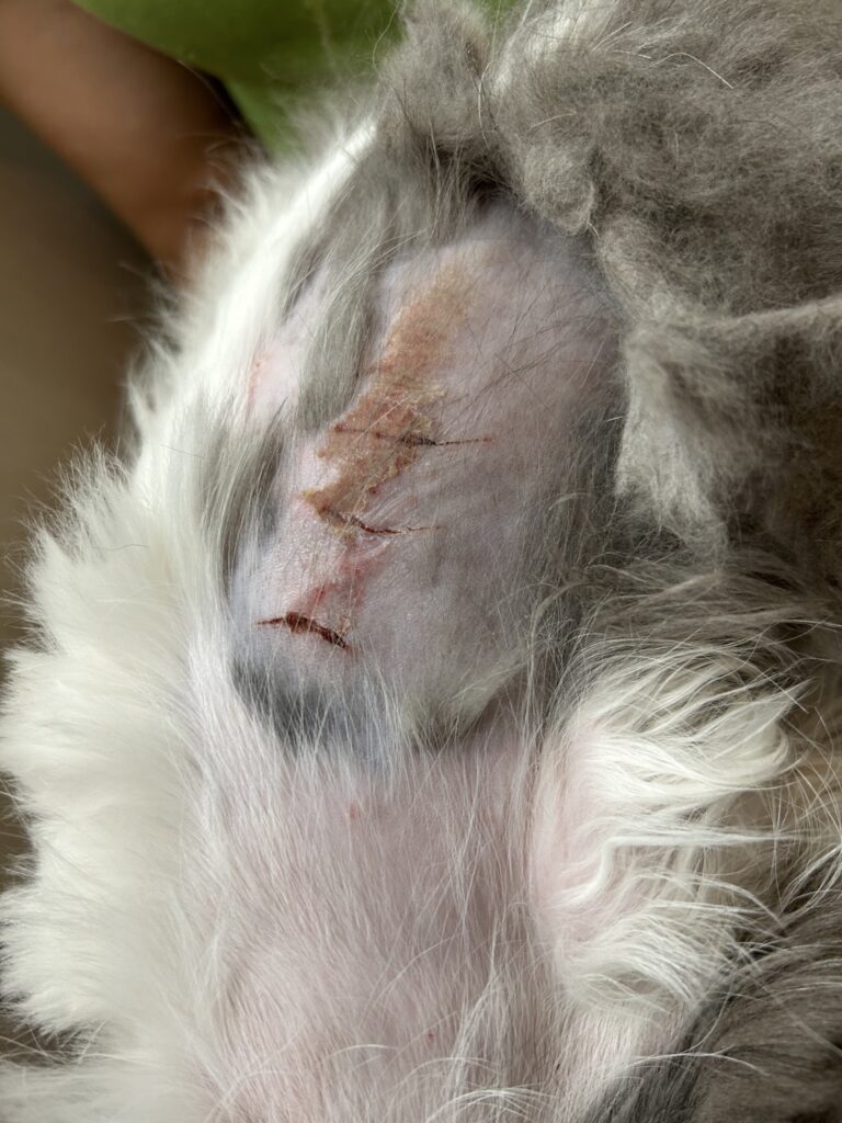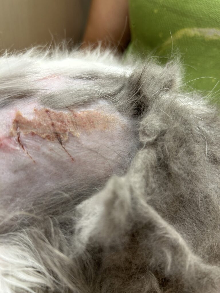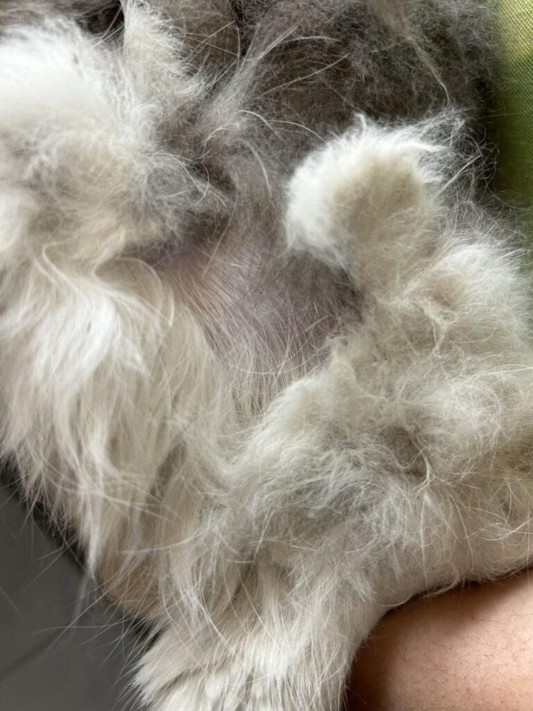 Dieser arme Scottish Fold Longhair ist nicht nur eine Qualzucht, man hat anscheinend auch versucht ihn selbst zu scheren, wobei er verletzt wurde. Offenbar wurden seine Wunden noch nicht mal tierärztlich versorgt.