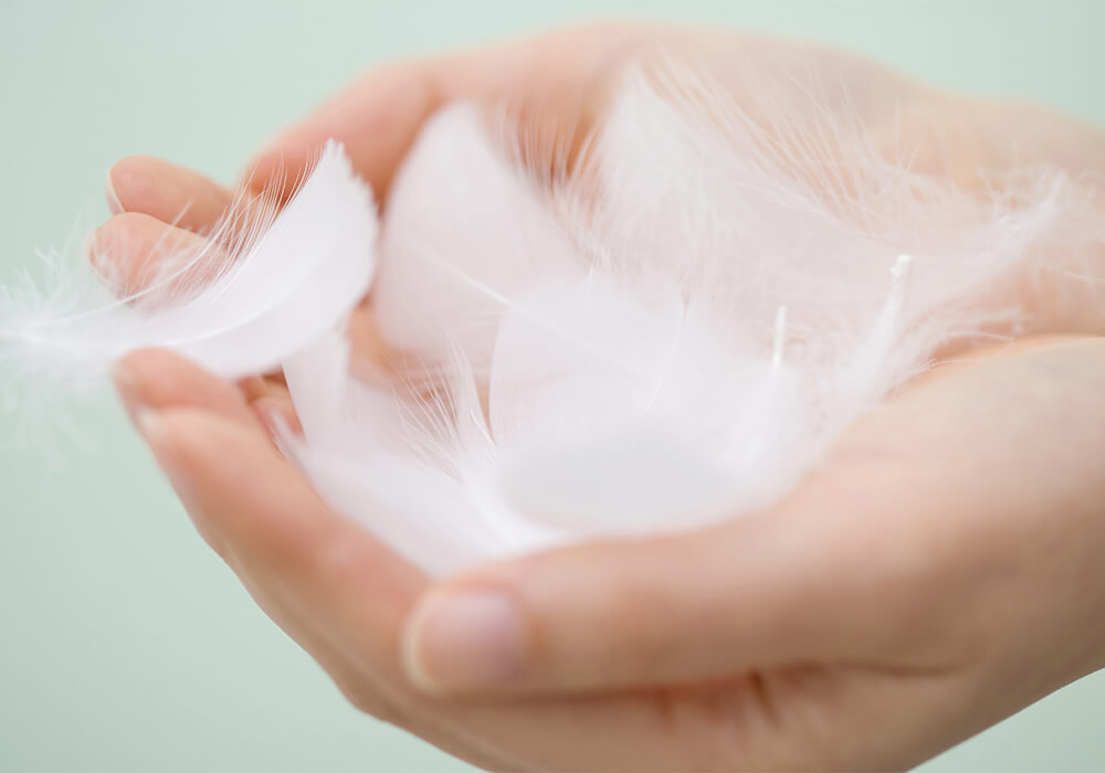 Aber was genau sind eigentlich Daunen? Daunen sind die kleinen, ganz weichen Unterfedern von Enten und Gänsen, die im Gegensatz zu den sichtbaren Federn keinen harten Kiel enthalten. Die man in Kissen, Decken und Jacken füllt, weil sie so fluffig kuschelig sind und schön warmhalten.