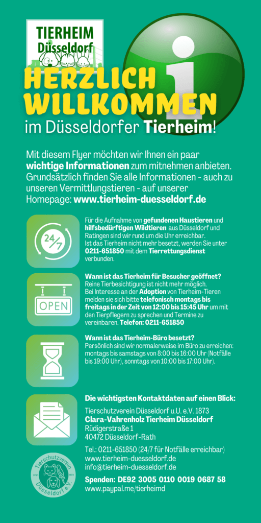 Tierheim und Tierschutzverein Düsseldorf haben verschiedene Informationsschriften erstellt und stellen diese kostenlos zur Verfügung. Auf dieser Seite finden Sie aktuelle Flyer zur Ansicht und zum ausdrucken.